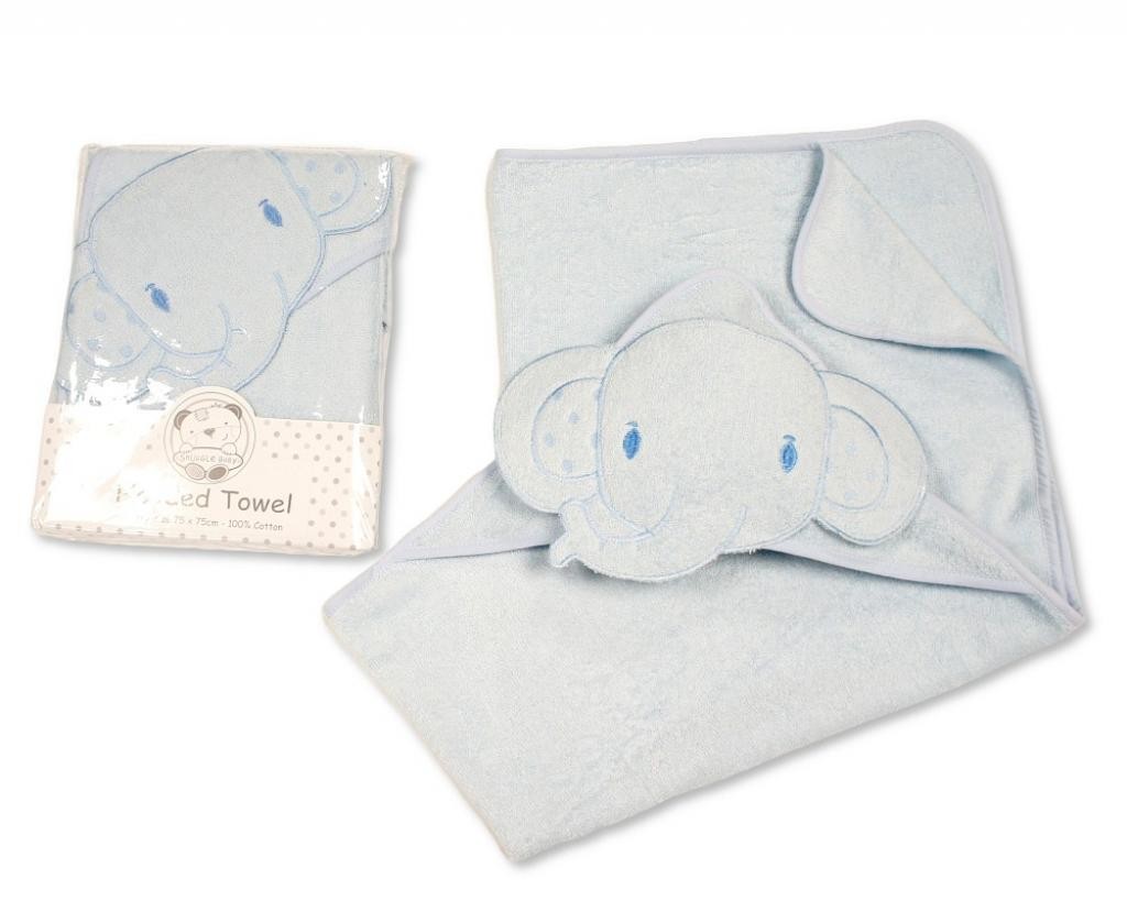 Baby Hooded Towel 100% cotton – 75 x 75cm – Elephant – Blue